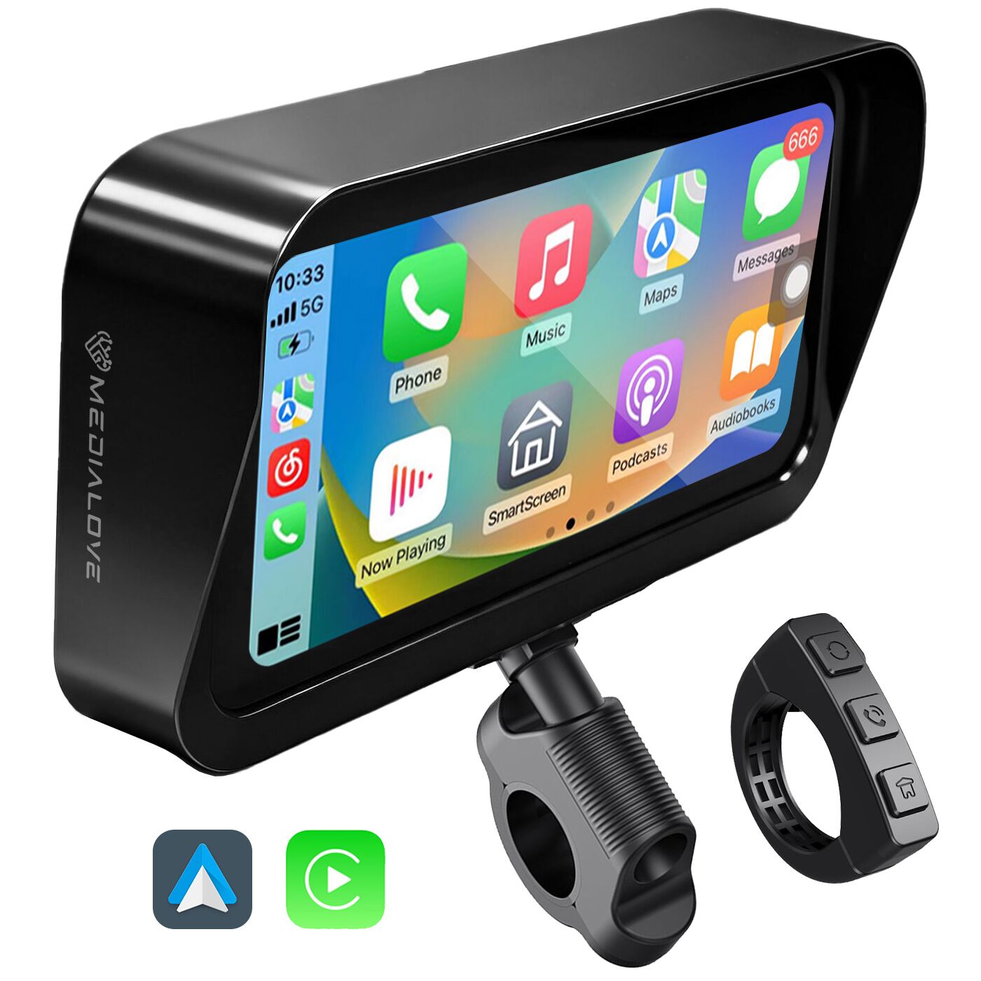 Ekran Medialove F83A to wodoodporny wyświetlacz o przekątnej 6,25 cala, który umożliwia korzystanie z Apple CarPlay i Android Auto bezpośrednio podczas jazdy. Dzięki temu masz dostęp do map, muzyki, kontaktów i połączeń – bez sięgania po telefon.