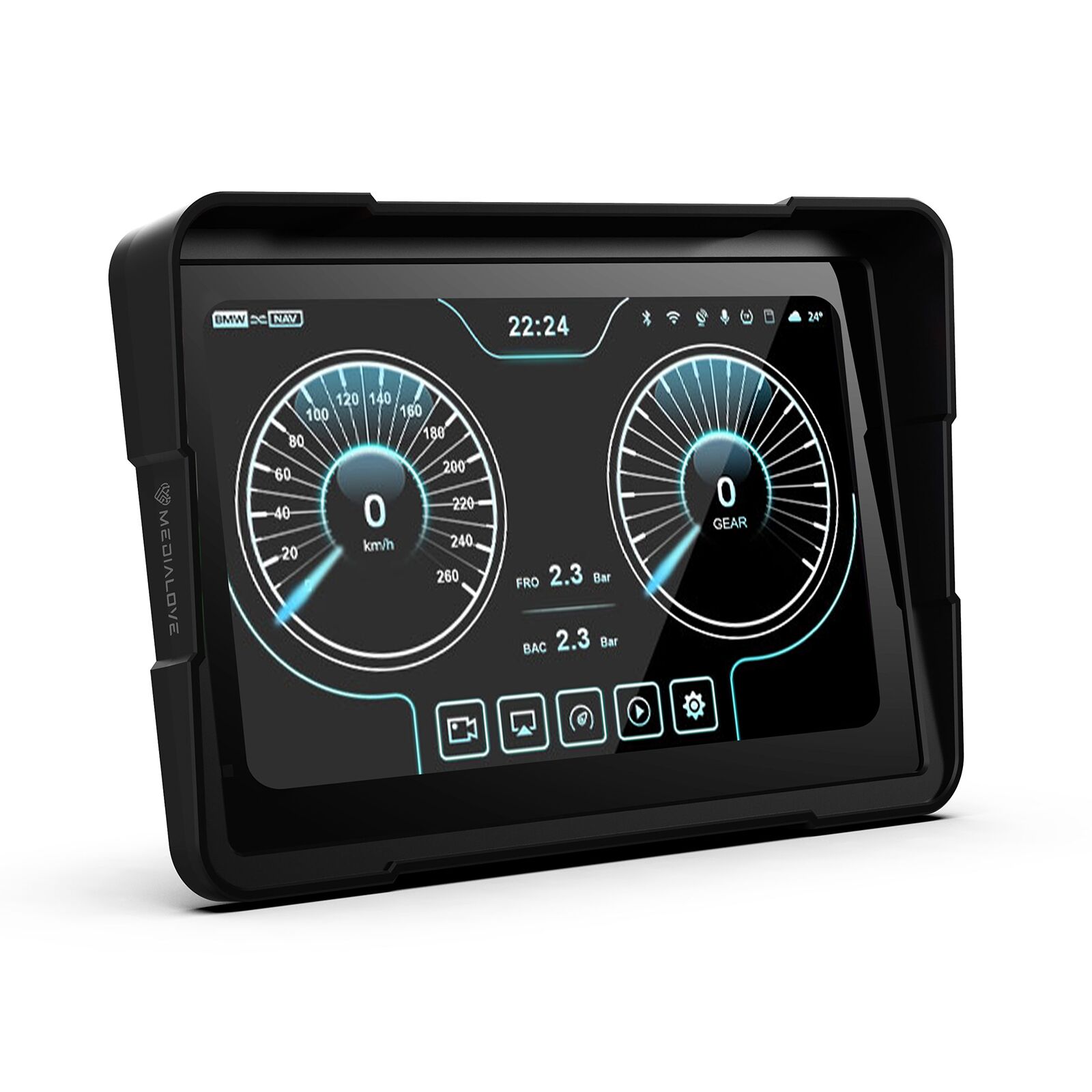 Medialove MW-7 to inteligentny wyświetlacz do motocykli BMW, zaprojektowany z myślą o montażu w fabrycznym uchwycie nawigacji. Urządzenie działa w trybie plug & play, bez konieczności modyfikacji instalacji i bez dodatkowego okablowania.