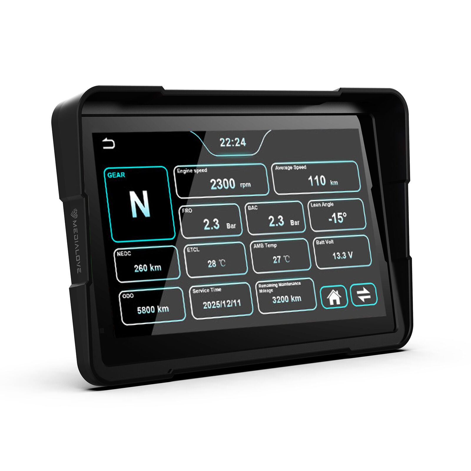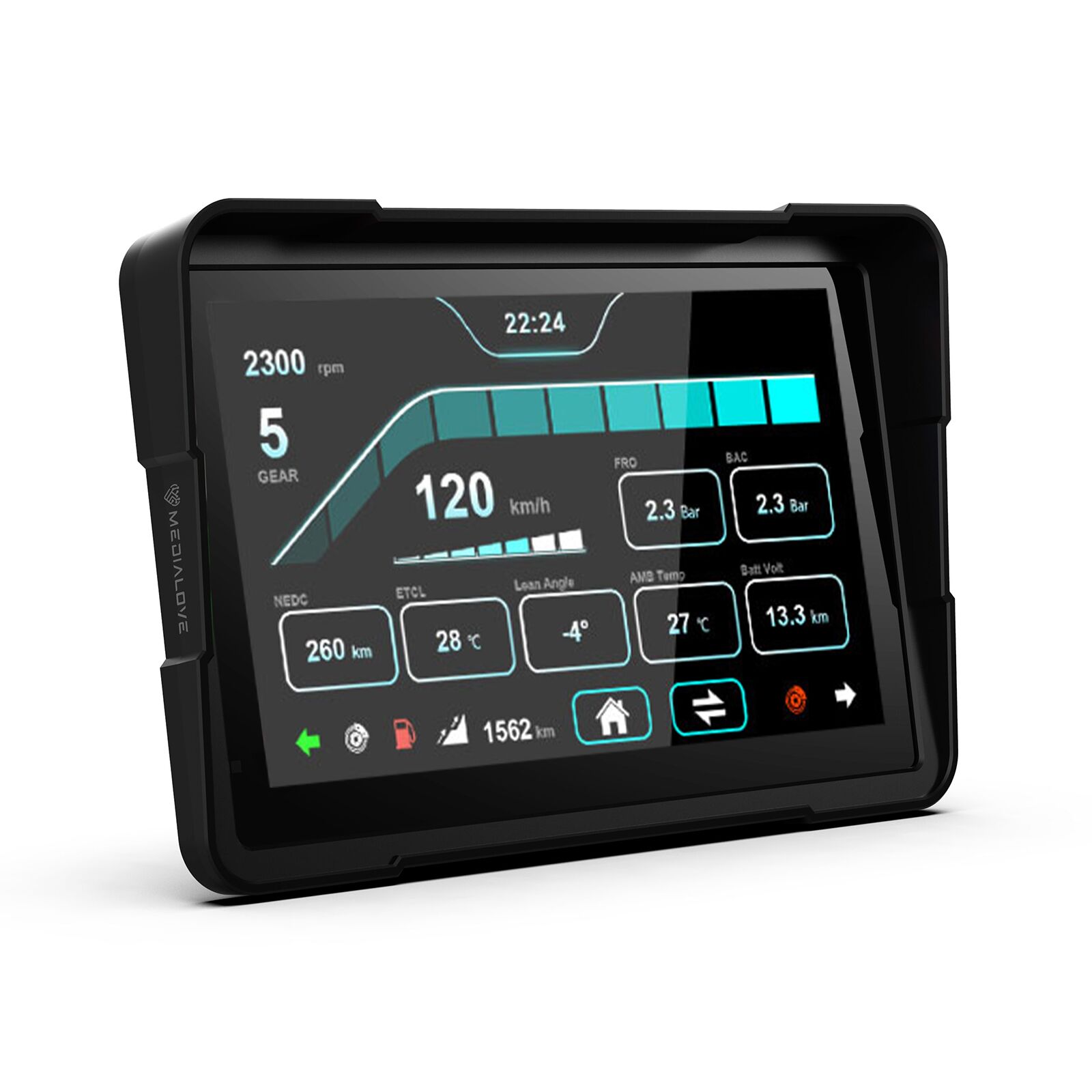 Medialove MW-7 wspiera wyświetlanie danych motocykla w czasie rzeczywistym bezpośrednio na ekranie podczas jazdy.