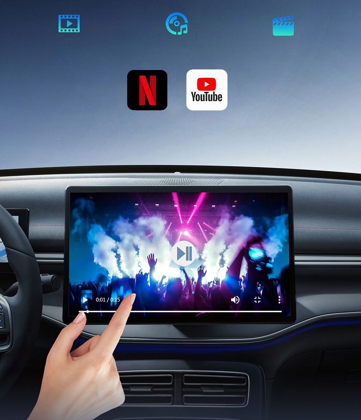 ⭐ Drive Box AI ma zainstalowane aplikacje, takie jak YouTube, Netflix czy Disney+, które pozwalają na oglądanie ulubionych filmów i seriali w samochodzie.