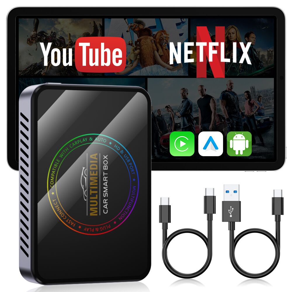 Zaawansowany adapter bezprzewodowy SMART DRIVE BOX AI, który umożliwia korzystanie z funkcji Apple CarPlay oraz Android Auto w samochodzie, eliminując potrzebę kabli. Urządzenie oferuje wygodę, elastyczność i pełne wsparcie dla popularnych aplikacji.