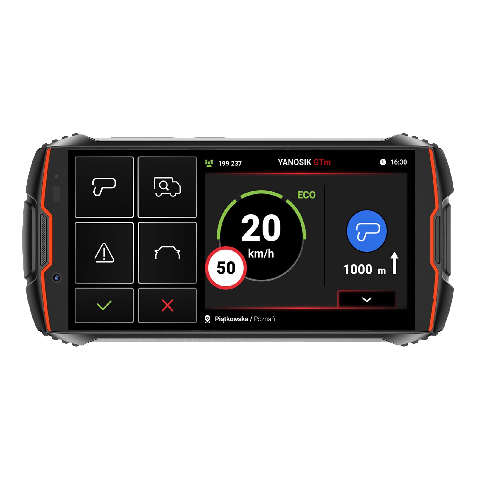 Yanosik GTm obsługujesz dotykowo, dzięki czemu interakcja z urządzeniem jest znacznie płynniejsza. Możesz dodawać swoje zgłoszenia łatwo i przyjemnie przez panel dotykowy.